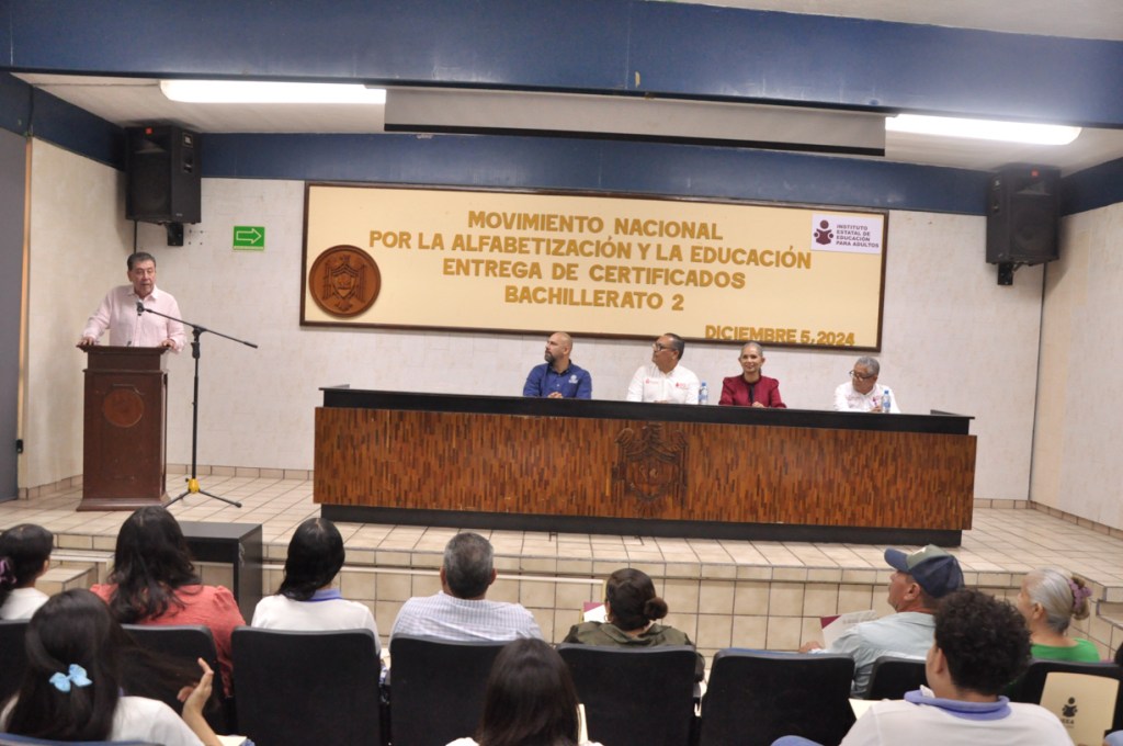 De febrero a diciembre de 2024, 19 estudiantes de este plantel participaron en el Movimiento Nacional por la Alfabetización y la Educación. “Gracias a ustedes, hoy tenemos 14 personas egresadas de primaria y 17 de secundaria, un total de 31, que recibieron su certificado. Gracias por apoyar al país, a Colima y a las personas adultas con su educación”, enfatizó Rodarte.