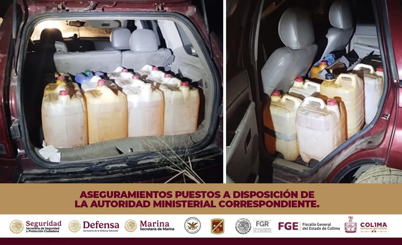 Ambos sujetos, así como los bidones de hidrocarburos, y el vehículo asegurado, fueron puestos a disposición de la Fiscalía General de la República, para continuar con su proceso legal correspondiente.