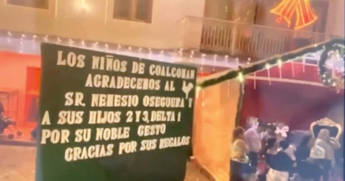 El hecho, registrado en un video que circula en redes sociales, muestra a un grupo de personas en una ceremonia en la plaza pública de Coalcomán el pasado 10 de diciembre. En el material, un hombre pide a los presentes agradecer el gesto: “A la de 3… muchas gracias”, a lo que las personas responden al unísono. En el lugar se colocó una manta atribuyendo el acto a “El Mencho” y sus hijos.