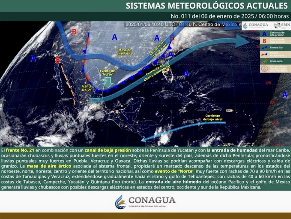 Colima, México, Avanzada (06/01/2025).-  Aunque el frente frío número 21 genera lluvias y bajas temperaturas en gran parte del país, Colima continuará con condiciones cálidas y sin precipitaciones este lunes 6 de enero, de acuerdo con el pronóstico del Servicio Meteorológico Nacional (SMN).