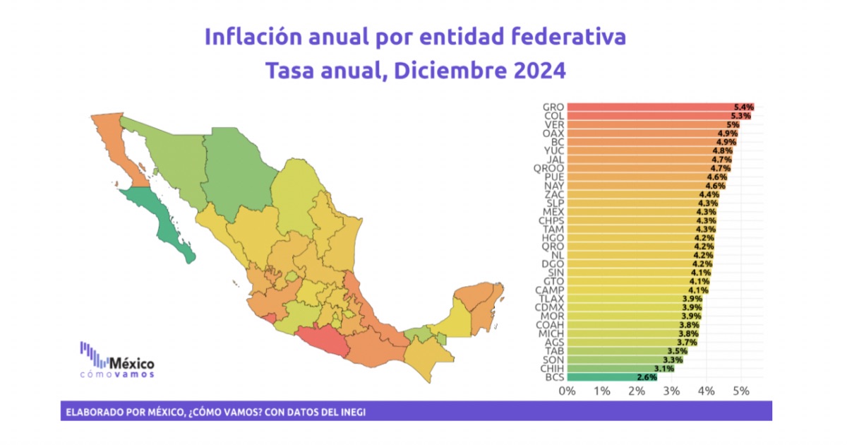 El cierre de 2024 deja en evidencia la desigualdad en los efectos de la inflación en distintas regiones del país. Mientras estados como Baja California Sur registraron la inflación más baja (2.6%), Colima enfrentó un aumento significativo en costos de bienes y servicios esenciales.