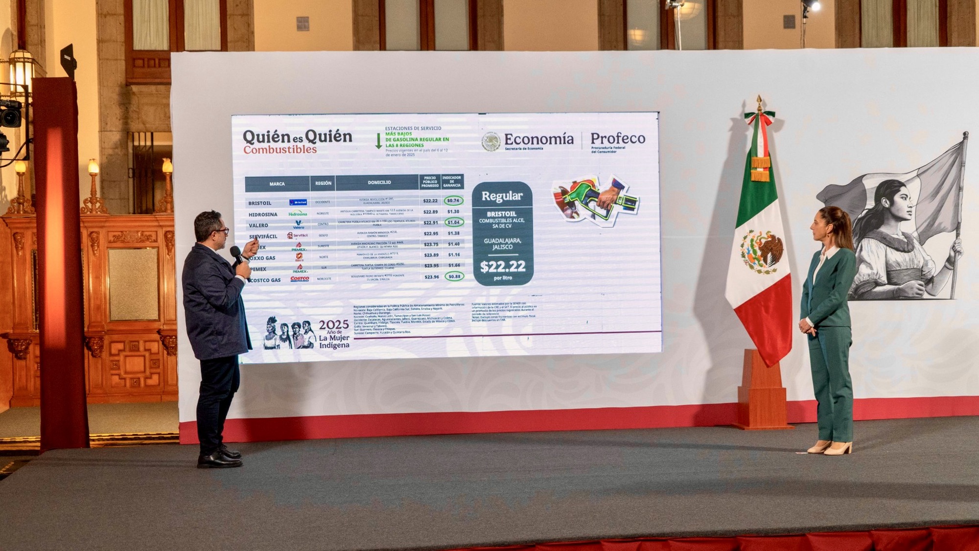 Ciudad de México, Avanzada (20/01/2025).– Durante la conferencia matutina de la presidenta Claudia Sheinbaum, el titular de la Procuraduría Federal del Consumidor (Profeco), Iván Escalante Ruiz, presentó el informe semanal “Quién es quién en los precios”, destacando irregularidades en la venta de combustibles, productos de la canasta básica y servicios de envío de dinero.