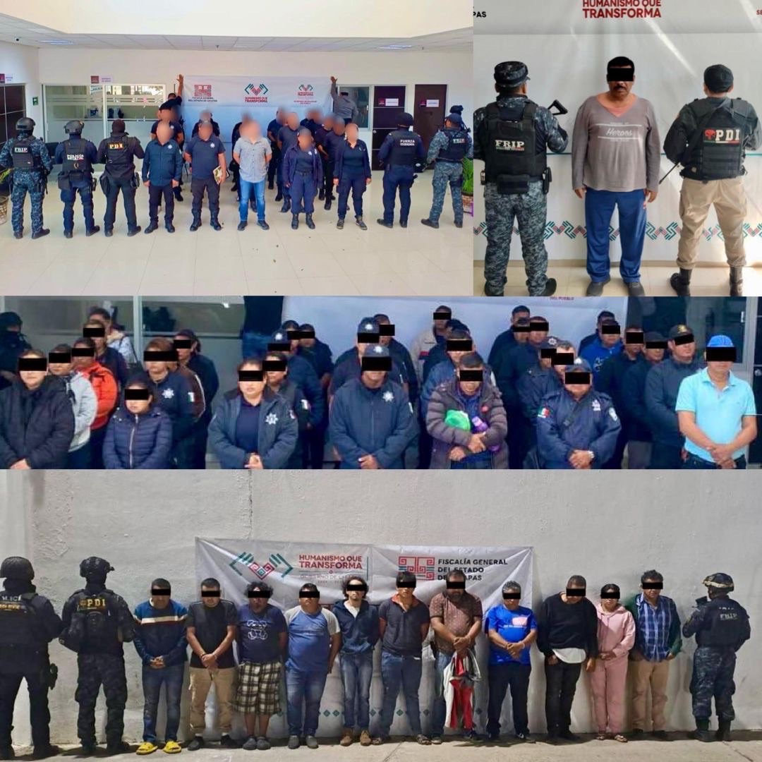 Chiapas, México, Avanzada (24/01/2025).- En un operativo conjunto, autoridades de Chiapas desarticularon una red de extorsión que operaba en los municipios de Villaflores y Villa Corzo, logrando la detención de 78 personas, incluidos 65 policías municipales, así como varios funcionarios, entre ellos René “N”, secretario municipal de Villaflores, y José Gregorio Cedeño Coutiño, director de la Policía Municipal de Villacorzo, quien presuntamente operaba bajo una identidad falsa.