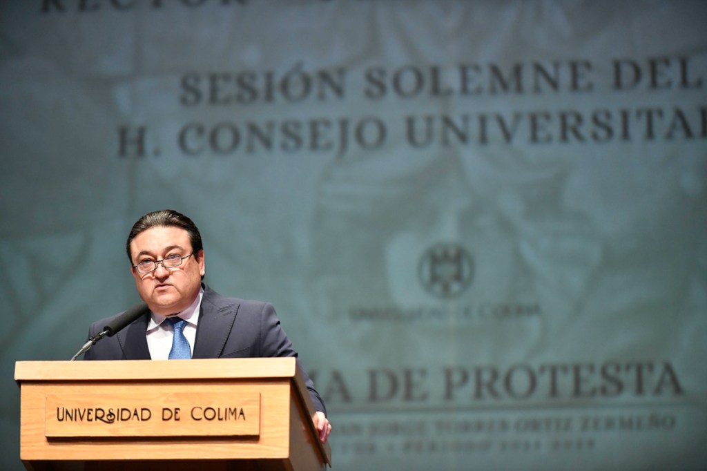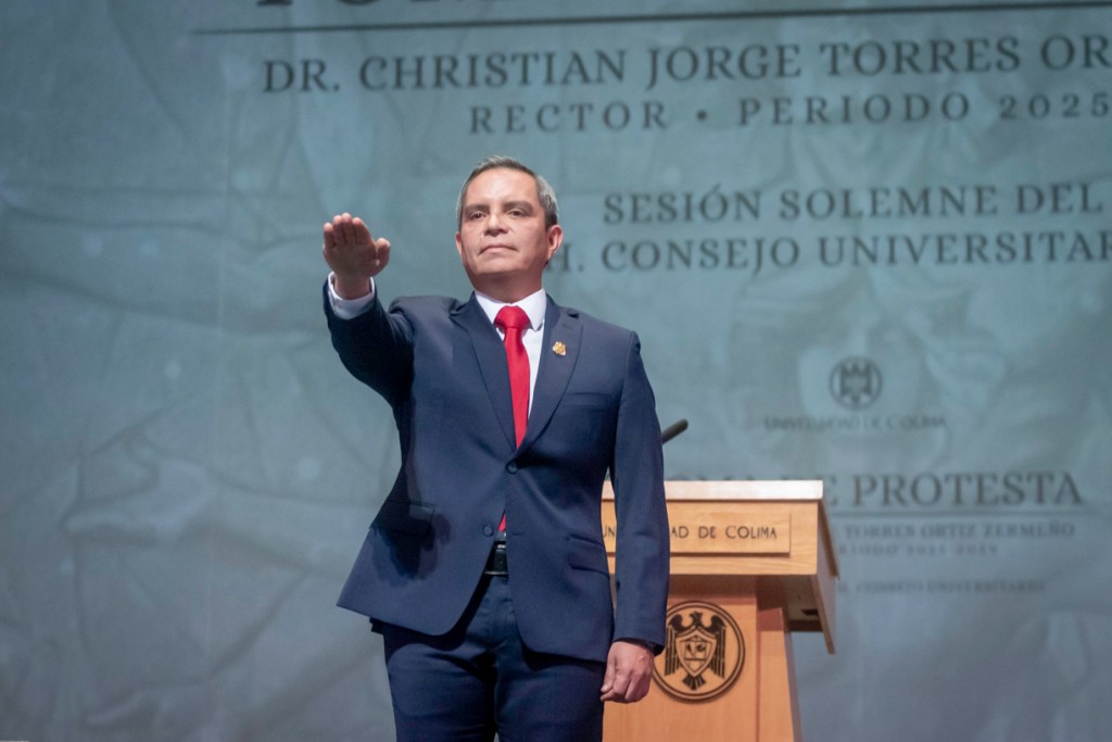Colima, México, Comunicado (01/02/2025).- Este sábado, Christian Jorge Torres Ortiz Zermeño rindió protesta como rector de la Universidad de Colima para un segundo periodo (2025-2029), en cumplimiento de la fracción primera del Artículo 28 de la Ley Orgánica y del artículo 19 del Reglamento Interior del Consejo Universitario, máximo órgano de gobierno de esta casa de estudio. La ceremonia, celebrada en el Teatro Universitario y transmitida por los medios oficiales de la institución, contó con la presencia de autoridades educativas, funcionarios públicos y representantes de la comunidad universitaria.