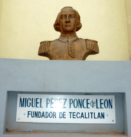 Busto del Capitán Ponce de León, último Alcalde Mayor de Colima, que se halla en el atrio del templo de Tecalitlán.