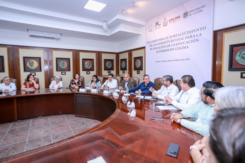 Colima, México, Comunicado (13/02/2025).- Para fortalecer la planificación y atención de la Educación Superior en Colima, se llevaron a cabo este jueves los Talleres para el Fortalecimiento de la Comisión Estatal para la Planeación de la Educación Superior, en la Universidad de Colima. Estos talleres tienen como objetivo analizar estrategias, herramientas y acciones dirigidas a ampliar y diversificar la oferta educativa, así como a contribuir al cumplimiento de los Objetivos de Desarrollo Sostenible (ODS) por parte de las instituciones educativas. Además, se busca optimizar los procesos de certificación profesional en el estado.