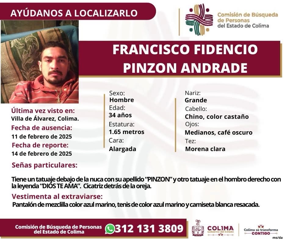 COLIMA7 días agoActivan ficha de búsqueda por desaparición de José Luis Toscano Ramírez en Colima