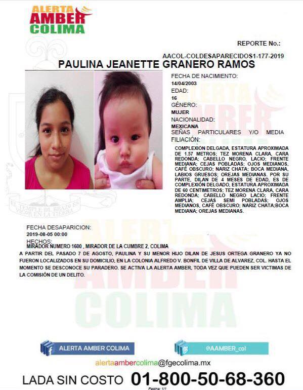 En la lista de mujeres desaparecidas se encuentra, Lluvia Citlali Contreras de 17 años de edad, Paula Graneros Ramos de 16 años de edad y su hijo, Dilán de Jesús Ortega, quienes fueron vistos por última vez en la colonia V. Bonfil en Villa de Álvarez.