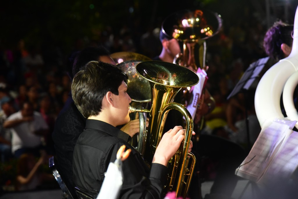 A las 20:00 horas inició el magno concierto, donde participaron más de 300 músicos de las distintas entidades del país, así como las bandas del estado de Colima, ante una nutrida concurrencia, que por más de dos horas se deleitó con las regias interpretaciones con temas como “Hawai”, “1452, La Conquista”, “Al sur de la frontera”, entre otros muchos éxitos.