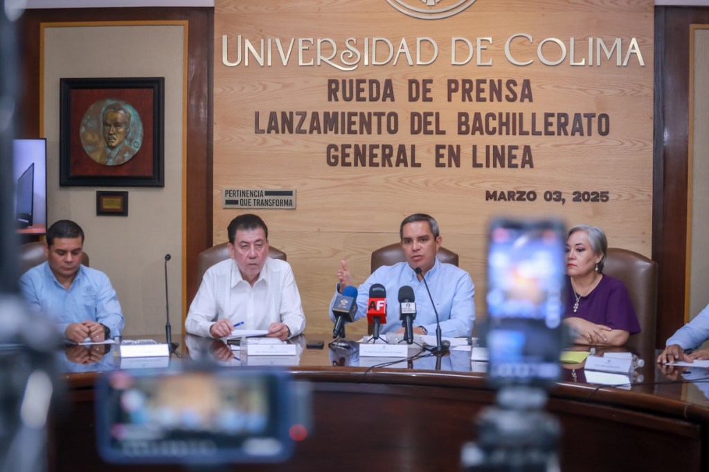 Colima, México, Comunicado (03/03/2025).- Este lunes, en rueda de prensa celebrada en la Sala de Juntas de la Rectoría, Christian Torres Ortiz Zermeño, rector de la Universidad de Colima (UdeC) anunció el lanzamiento de la convocatoria para aspirantes al nuevo Bachillerato General en Línea. Con este programa, pionero de su tipo en los bachilleratos del país, dijo el rector, la casa de estudios busca contribuir a evitar el rezago y ampliar la cobertura educativa estatal y en el país.