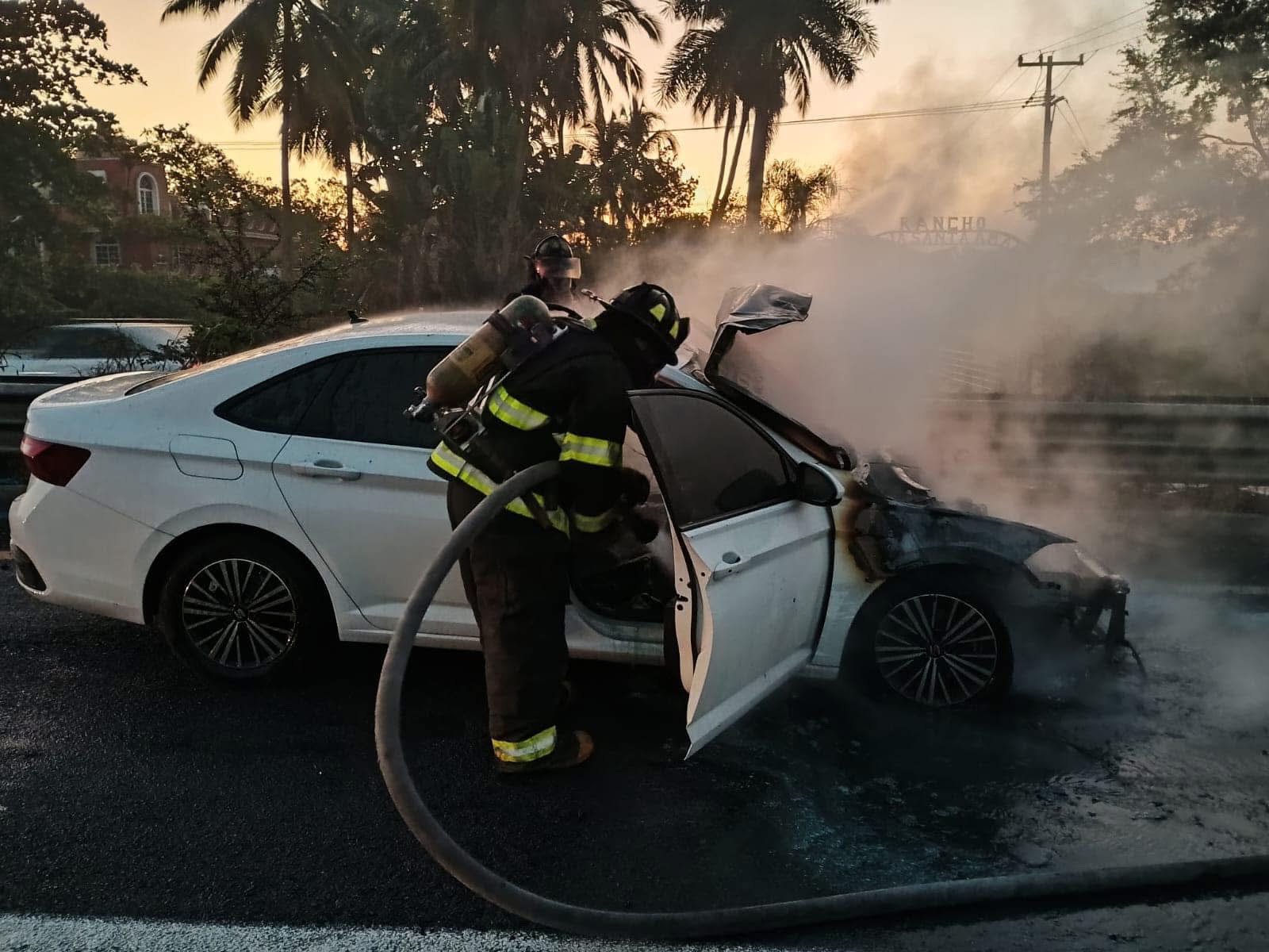 Automóvil se incendia sobre la carretera Colima a Tecomán