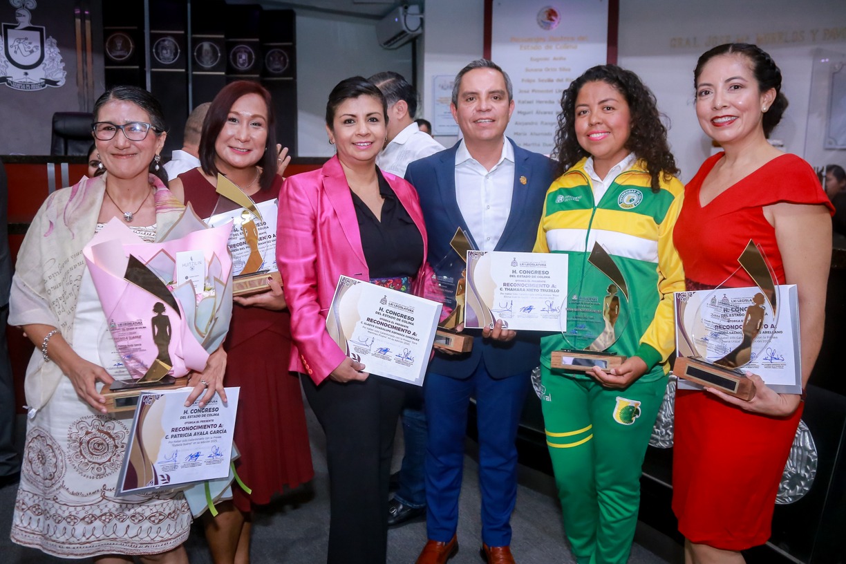 Colima, México, Comunicado (10/03/2025).- En sesión solemne del Congreso del Estado, celebrada este lunes, seis universitarias fueron galardonadas con la presea de honor como mujeres destacadas en el estado de Colima. La ceremonia, presidida por la gobernadora Indira Vizcaíno Silva, rindió homenaje a Patricia Ayala García, Yunuén Cuevas Arellano, Pilar Hernández Chávez, Gladys Espinoza González, Thamara Nieto Trujillo y Catalina Suárez Dávila (jubilada) por sus logros y aportaciones en diversas disciplinas y áreas de trabajo.