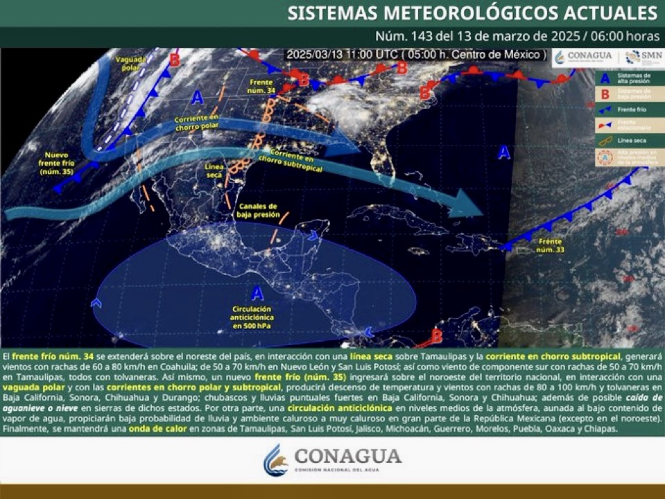 La onda de calor también afectará a otros estados del país, como Jalisco, Michoacán y Guerrero, mientras que en el noroeste de México se espera un fuerte descenso de temperatura por el ingreso de un nuevo frente frío.