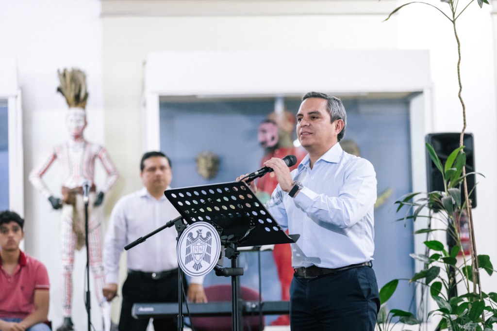 Felicitó a la homenajeada por sus más de 30 años de servicio a la UdeC y resaltó el hecho de que ella, ahora como jubilada, “siga compartiendo de manera generosa su arte a través de esta retrospectiva”.