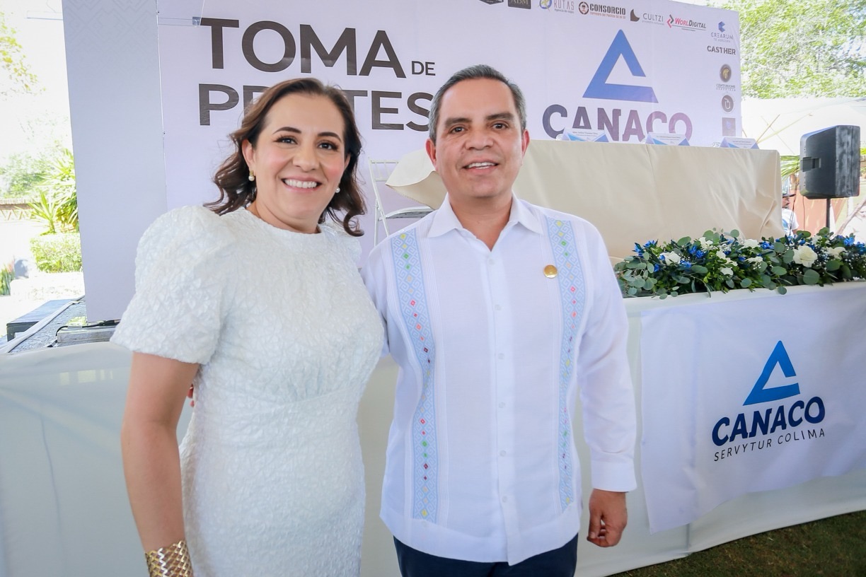 Colima, México, Comunicado (04/04/2025).- Este viernes 4 de abril, en la Hacienda Pastores, se efectuó la Ceremonia de Toma de Protesta de la nueva mesa directiva de la Cámara Nacional de Comercio, Servicios y Turismo del Estado de Colima (CANACO SERVYTUR) para el periodo 2025–2026, que presidirá Gabriela Helena Gómez Brun.