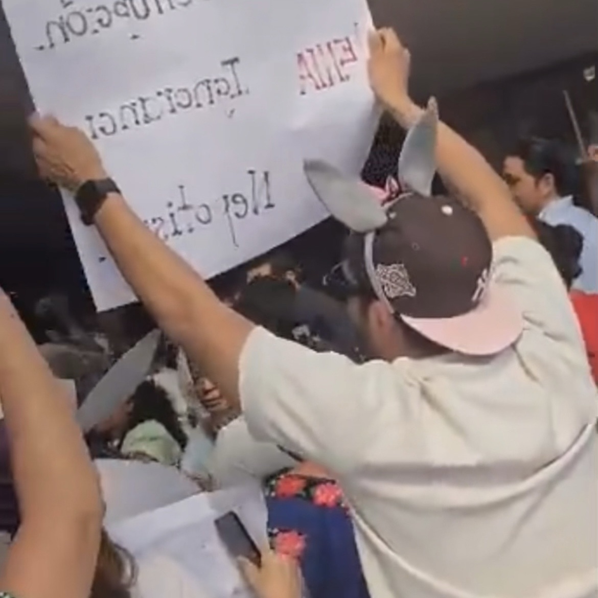Protestan en Tabasco contra ministra de la SCJN con orejas y colita de burro