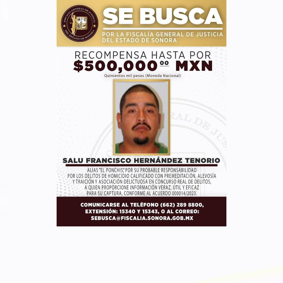 “El Ponchis” es identificado como jefe de plaza del grupo delictivo ‘Los Salazar’, considerado el brazo armado del Cártel de Sinaloa en la frontera entre Sonora y Arizona. Se le vincula con múltiples delitos graves, incluyendo homicidio calificado, asociación delictuosa y delincuencia organizada.