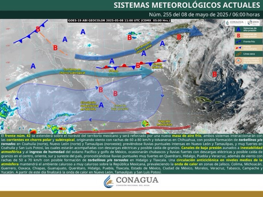 Estas condiciones son parte de una intensa onda de calor que también afecta a los estados de Jalisco y Michoacán, mientras que la influencia de sistemas meteorológicos en el norte del país mantiene activos otros fenómenos como tornados y lluvias intensas en regiones del noreste mexicano.