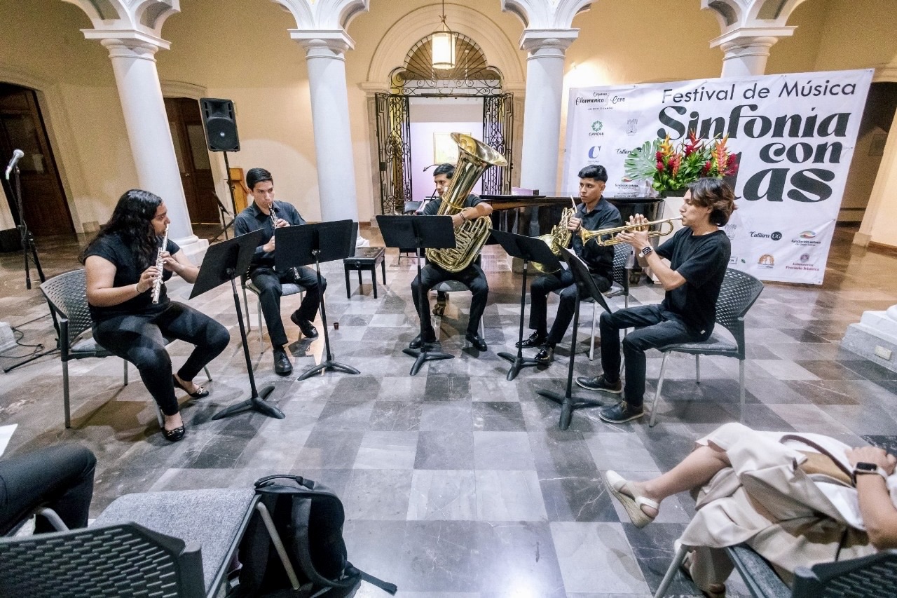 Durante el evento, estudiantes que participaron en las clases magistrales del festival ofrecieron un variado programa musical que incluyó obras como Sonata en Mi bemol de J.S. Bach, Intermezzo de M.M. Ponce, y extractos de la Partita II BWV 1004 para violín solo, entre otras piezas de compositores como R. Schumann.