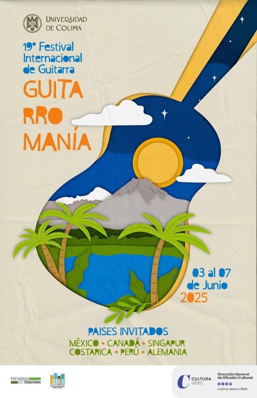 En junio se llevará a cabo el XIX Festival Internacional de Guitarra “Guitarromanía”, del 3 al 7, con conciertos en distintos escenarios de la ciudad de Colima. Asimismo, el 10 y 11 de ese mes tendrá lugar el Primer Concierto Académico con la participación de estudiantes de la Licenciatura en Música, en la Pinacoteca Universitaria.