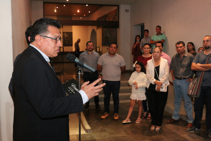 En su intervención, Carlos Hernández López, director de la Pinacoteca, dijo que la obra que se inauguraba esa noche “es poco convencional, no sólo por el manejo de colores pardos, azules y verdes, sino porque todas las piezas están trabajadas con colores pardos, con atmósferas que intencionalmente llevarán hacia lo nostálgico y triste”.