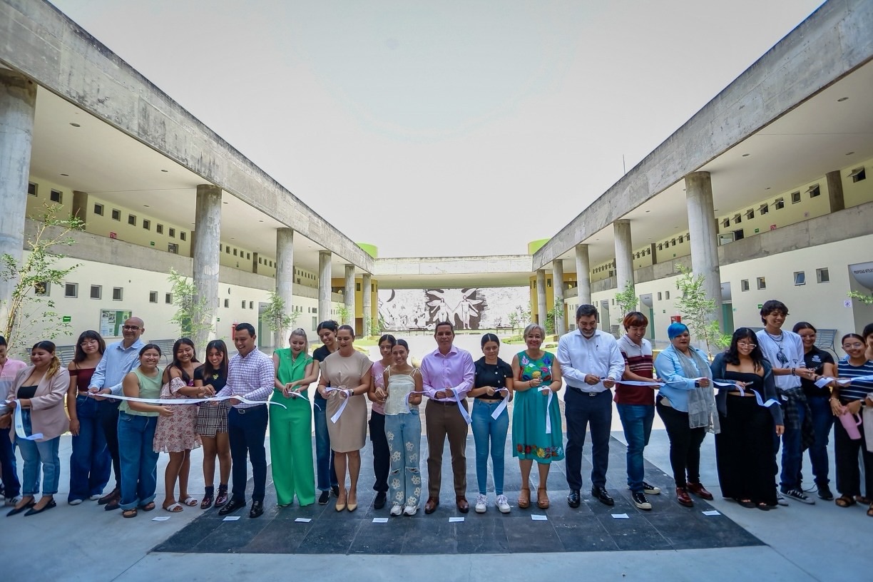 Colima, México, Comunicado (16/05/2025).- Gracias a la suma de voluntades de varias dependencias de la Universidad de Colima, este viernes fue entregada la remodelación del patio central de la Facultad de Derecho, con una inversión de un millón 330 mil pesos, de los cuales 450 mil pesos fueron aportados por el propio plantel. La enorme fuente original fue cambiada, con ayuda de varios arquitectos en formación, por un espacio más inclusivo y amigable con el medio ambiente.