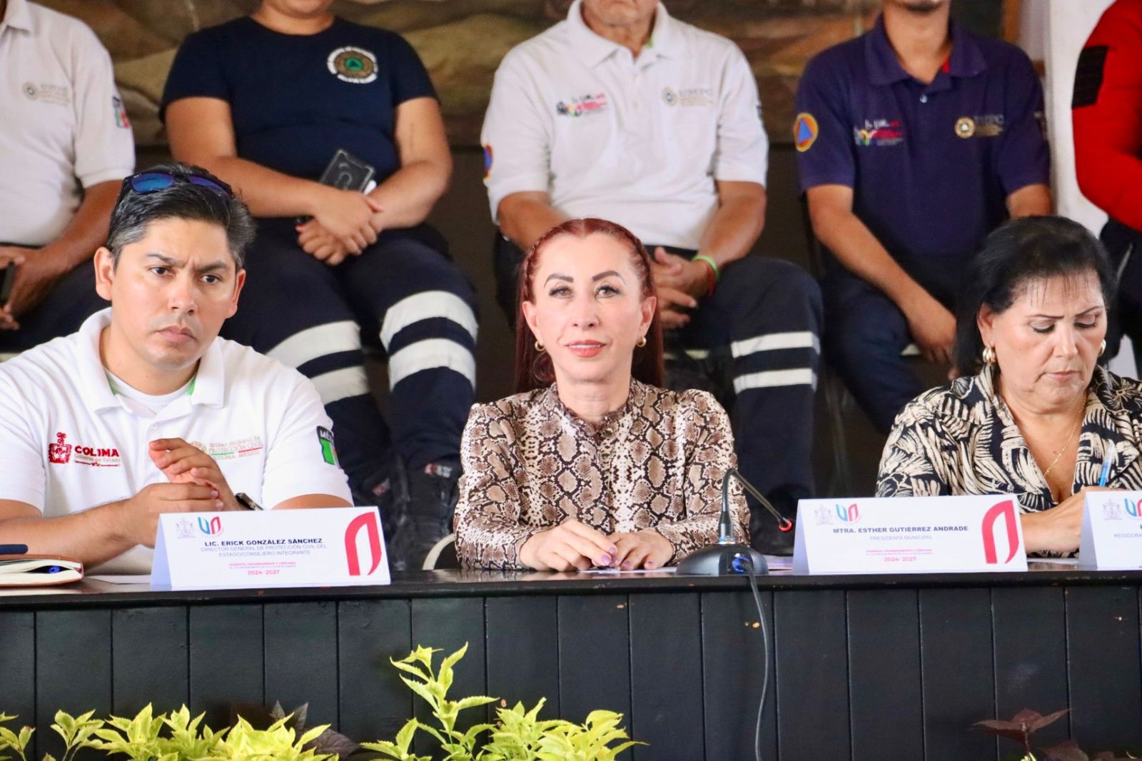 Villa de Álvarez, Colima, Comunicado (21/05/2025.- La Presidenta Tey Gutiérrez Andrade instruyó a los integrantes del Consejo Municipal de Protección Civil de Villa de Álvarez, a intensificar las labores preventivas por el temporal lluvias próximo a iniciar.