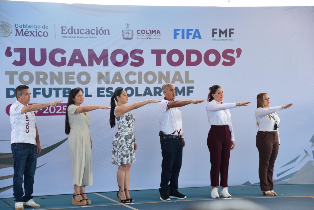 Colima, Colima, Comunicado (26/05/2025).- El presidente municipal de Colima, Riult Rivera Gutiérrez, asistió este lunes a la ceremonia inaugural del Torneo Nacional de Futbol Escolar 5 FMF “Jugamos Todos” 2024-2025, celebrado en las instalaciones de la Escuela Secundaria Jesús Reyes Heroles, ubicada en la capital del estado.