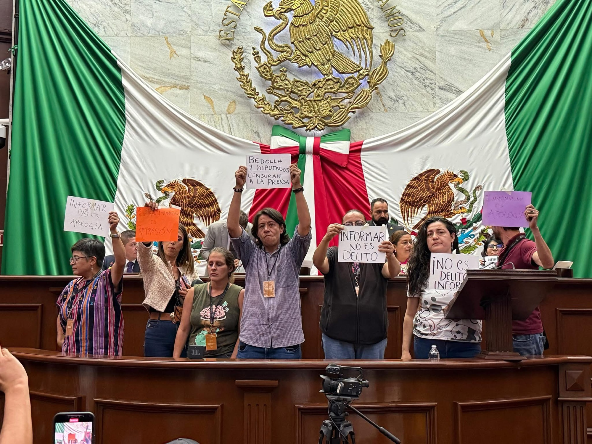 Morelia, México, Avanzada (29/05/2025).- Sin consulta y al vapor, el Congreso de Michoacán aprobó en su sesión de este miércoles la reforma penal para tipificar la apología del delito, que según el colectivo de periodistas #NiUnoMás Michoacán constituye una amenaza grave y latente contra la libertad de expresión, la crítica pública, la expresión artística, la organización ciudadana y la participación política.