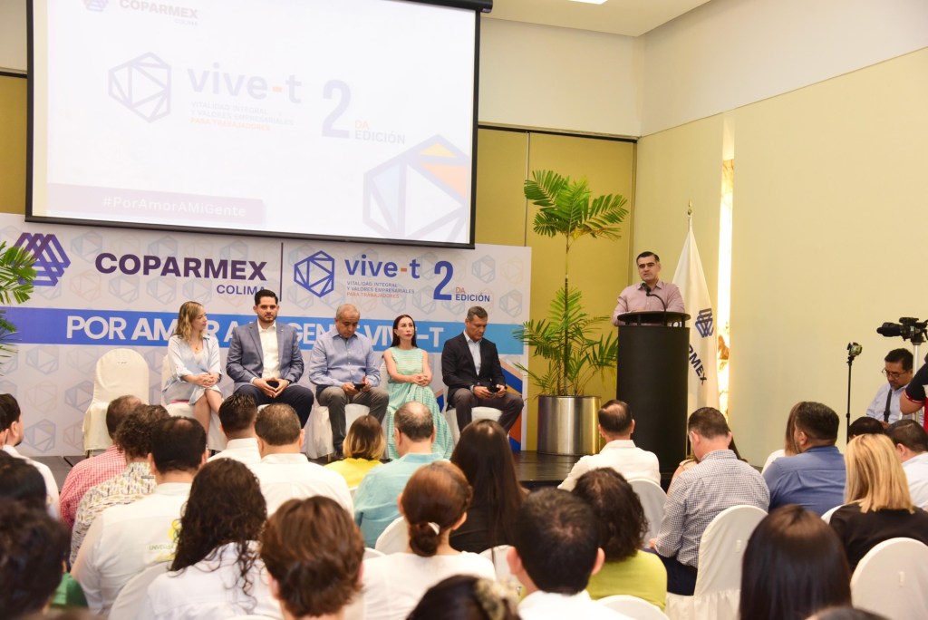 Agradeció a Coparmex Colima, la invitación a participar en esta segunda edición del foro Vive-t y reconoció el esfuerzo conjunto de las instituciones organizadoras para fomentar espacios que impulsan una nueva visión de economía en el municipio.