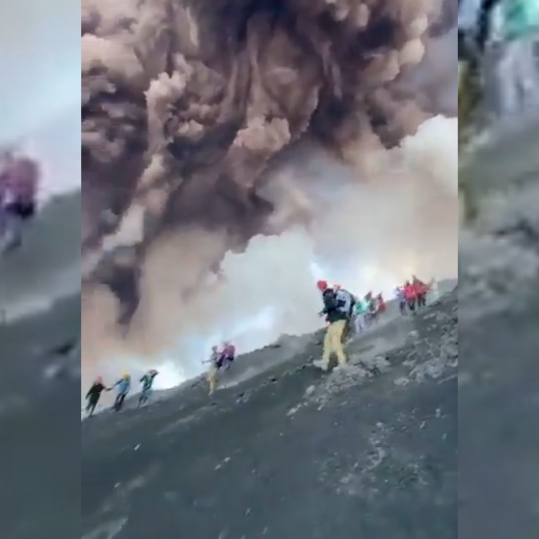 El Etna entró en erupción lanzando ceniza, rocas y gases tóxicos, mientras turistas huían o se tomaban selfies. Autoridades emiten alerta roja y piden evacuar la zona.