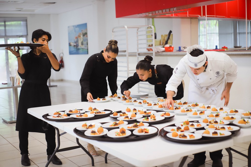 Además de la preparación de alimentos, las y los alumnos participaron en el montaje, decoración, ambientación musical y servicio de mesas, mostrando su capacidad de trabajo en equipo y atención al detalle.