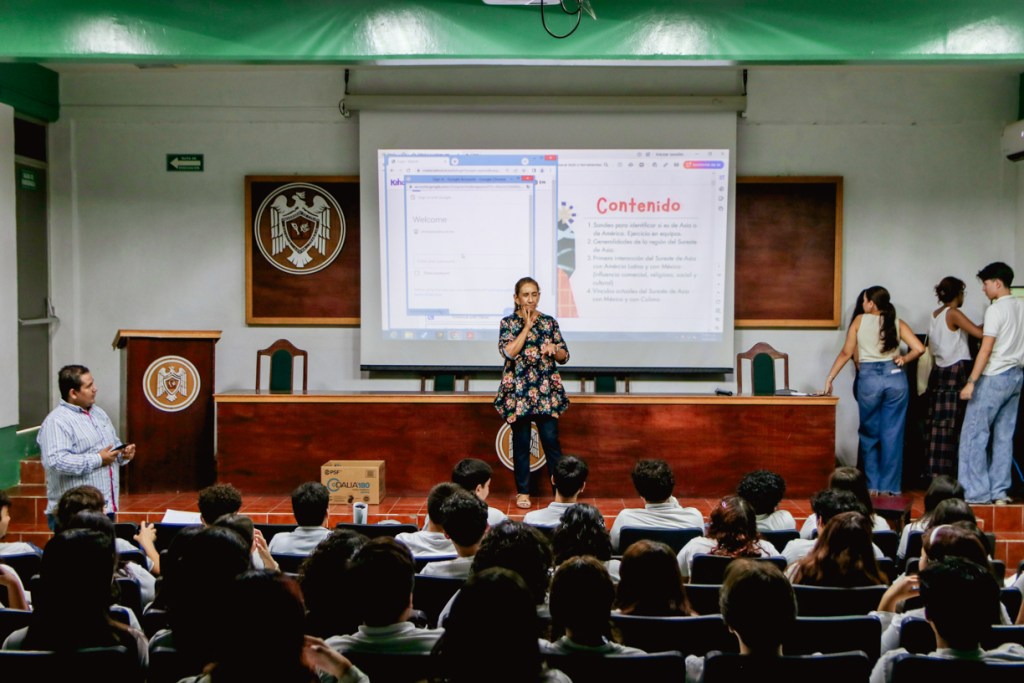 Recientemente, estudiantes de cuarto semestre asistieron a dos charlas impartidas por la Dra. Maricela Mireya Reyes López, del Centro Universitario de Estudios e Investigaciones sobre la Cuenca del Pacífico (CUEICP), donde exploraron las relaciones históricas y económicas entre México y países del Sudeste Asiático, así como similitudes y diferencias en las actividades agrícolas de ambas regiones. Estas sesiones fortalecieron la conciencia del estudiantado sobre los vínculos internacionales que impactan a Colima y al país.