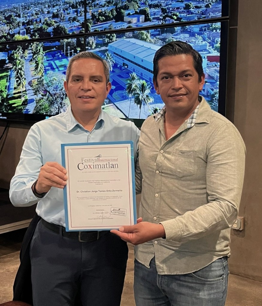 Colima, México, Comunicado (07/06/2025).- En el segundo día de su gira de trabajo por California, Estados Unidos, el rector de la Universidad de Colima (UdeC), Dr. Christian Jorge Torres Ortiz Zermeño, llevó a cabo una intensa agenda de actividades institucionales en Los Ángeles, enfocadas en promover el curso “Política y Cultura Mexicana para Jóvenes DREAMERS” y en estrechar lazos con autoridades locales, medios de comunicación y la comunidad colimense radicada en esta ciudad.