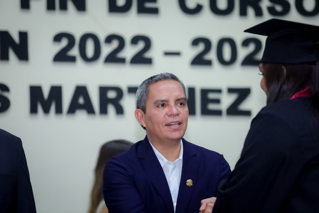 Esther Gutiérrez Andrade, alcaldesa de Villa de Álvarez invitada también a esta graduación, felicitó a las y los egresados “por la superación de una etapa más y por el gran equipo que conforman directivos y docentes. Hoy concluyen un paso más, uno importante, en el camino de su formación académica, que aún no termina”.