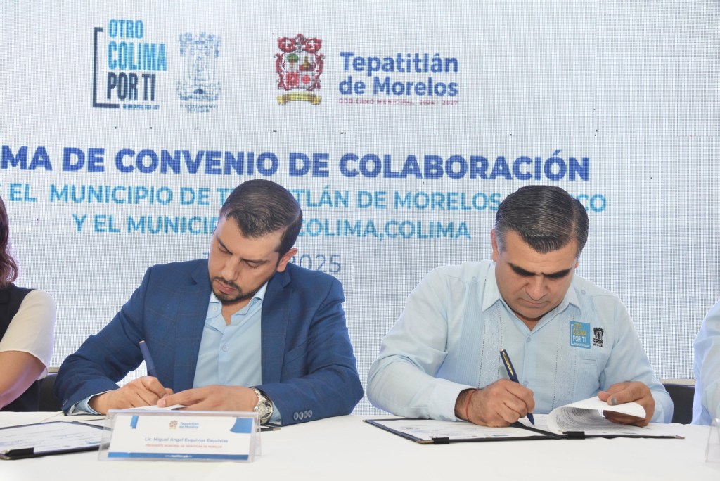 El convenio fue firmado por el presidente municipal de Tepatitlán de Morelos, Miguel Ángel Esquivias Esquivias, y el alcalde de Colima, Riult Rivera Gutiérrez.
