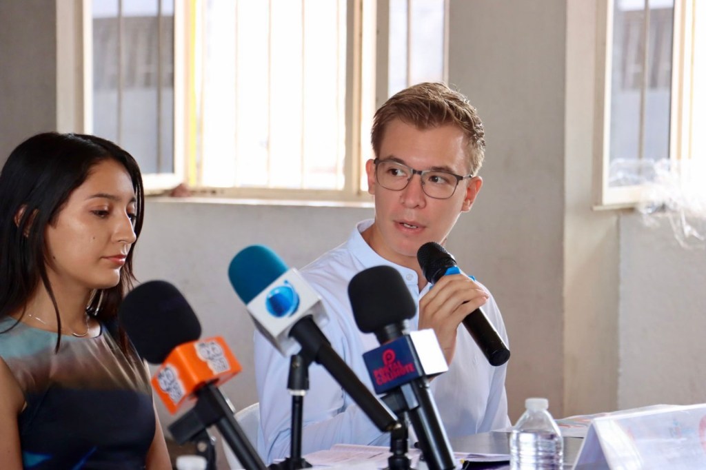 A la conferencia de prensa asistieron Alexandra de Jesús Negrete; la Secretaria del Ayuntamiento, Lizet Rodríguez y los organizadores y organizadoras de los eventos del Mes de la Juventud, Edna Clarisa Nieto, Eira Cárdenas y Leopoldo Daniel.