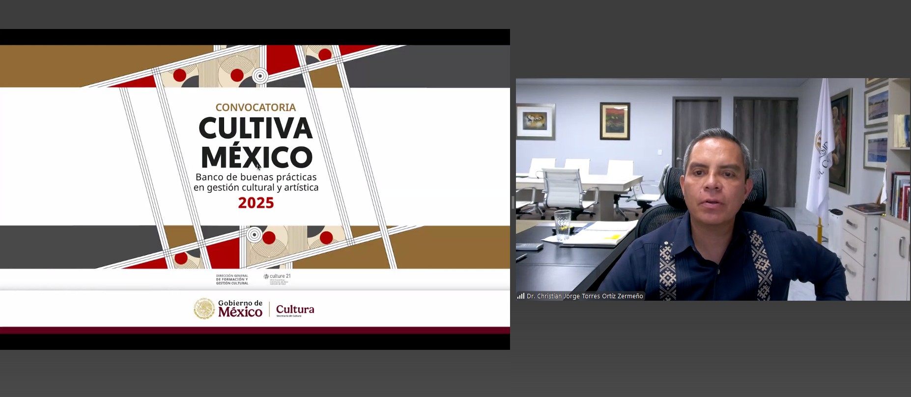 Además, señaló que uno de los objetivos de la dirección a su cargo es desarrollar nuevas herramientas que fortalezcan el trabajo enfocado en derechos culturales, territorio y sostenibilidad, resaltando la importancia de la formación en gestión cultural. “En ese sentido, hemos acordado que la Secretaría de Cultura del Gobierno de México se convierta en la entidad responsable de certificar las capacidades culturales y artísticas”, indicó.