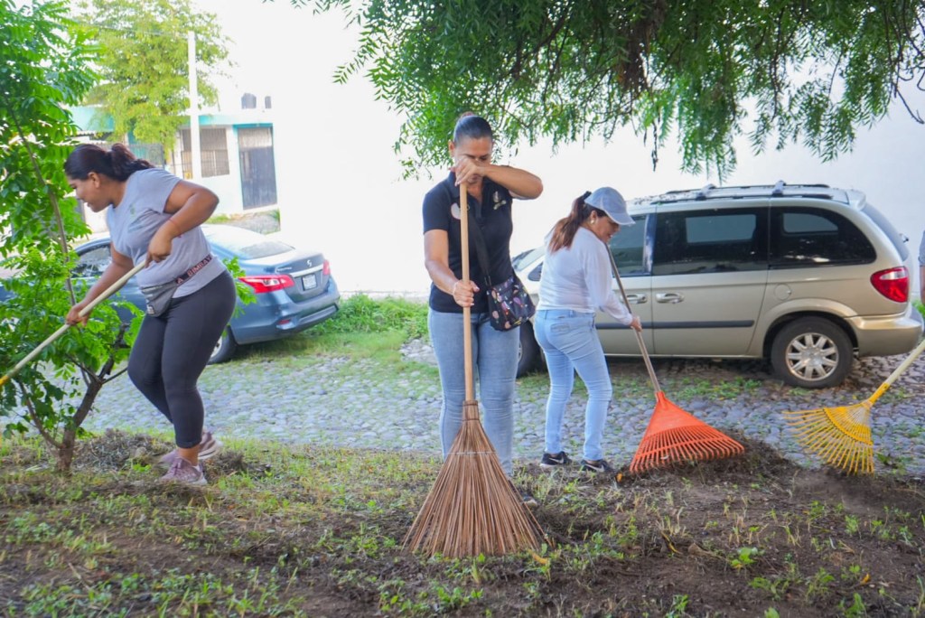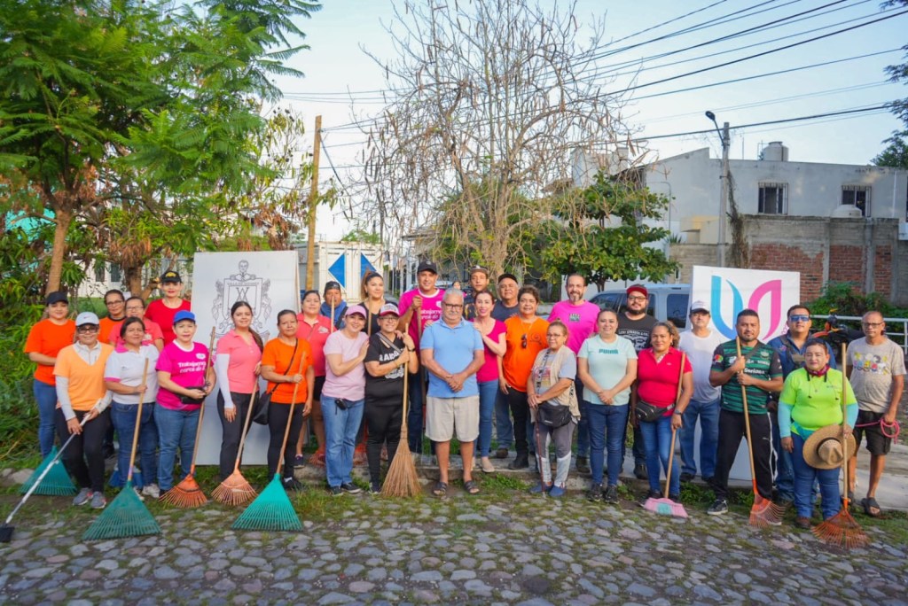 Villa de Álvarez, Colima, Comunicado (18/08/2025).- Encabezados por la Presidenta Tey Gutiérrez, funcionarios de confianza, trabajadores sindicalizados y vecinas y vecinos de las colonias Santa Cristina, El Haya y Villas de Oro, realizaron trabajos de limpieza en espacios públicos de esos fraccionamientos de Villa de Álvarez.