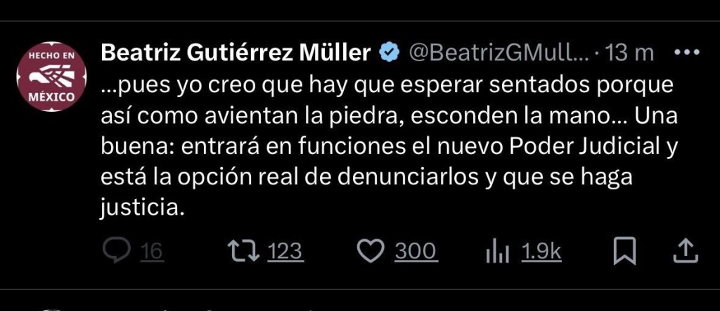 La presidenta Claudia Sheinbaum respaldó a Gutiérrez Müller y criticó a los medios que difunden información falsa, mientras que la presidenta nacional de Morena, Luisa María Alcalde, la calificó como “extraordinaria” y “libre”.