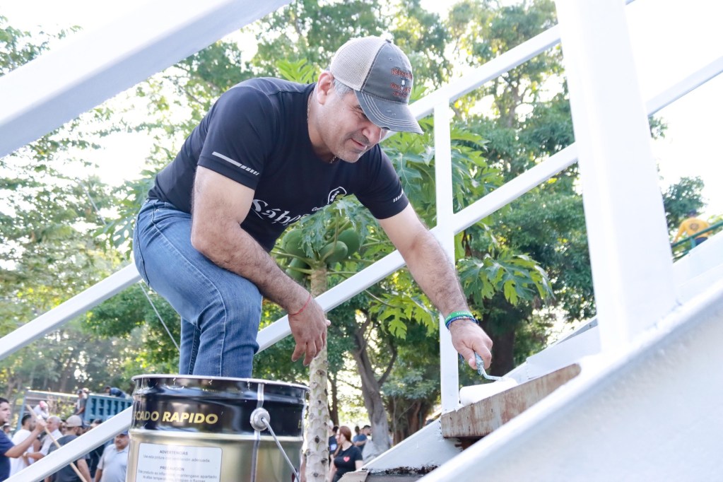 Durante la jornada se realizaron labores de poda de árboles, corte de pasto, recolección de basura y residuos, aplicación de pintura en el puente, revisión del sistema de alumbrado, así como limpieza del camellón central en la avenida Cristóbal Colón, desde la calle Juárez hasta Medellín.