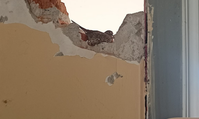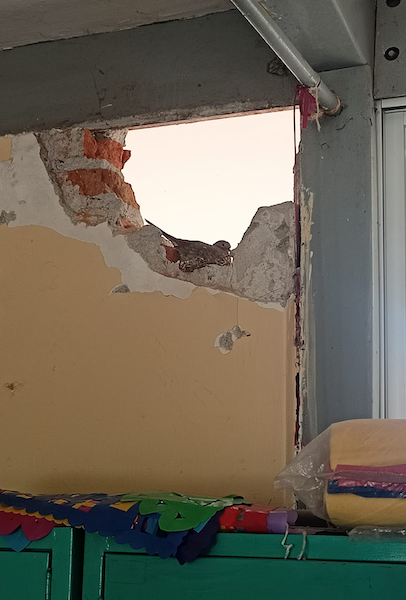 Colima, México, Avanzada (20/01/2022).- La escuela Enrique Andrade aún tiene daños visibles provocados por el sismo del pasado 19 de septiembre, incluso, las aves aprovecharon para...