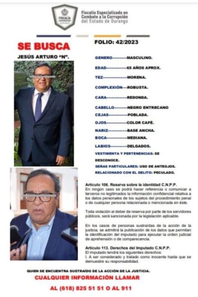 Durango, México, Comunicado (14/02/2024).- La Fiscalía Especializada en Combate a la Corrupción del Estado de Durango emitió este jueves una solicitud de colaboración a la ciudadanía...