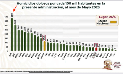 Colima, México, Avanzada (28/06/2023).- En el recuento de homicidios dolosos cometidos desde 2018 y hasta el pasado mes de mayo, Colima encabeza la tasa de asesinatos...