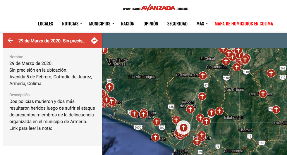 Colima, México, Avanzada (30/03/2020).- Dos policías murieron y dos más resultaron heridos luego de sufrir el ataque de presuntos miembros de la delincuencia organizada en el...