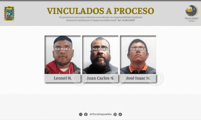 Puebla, México, Comunicado (15/11/2023).- La Fiscalía General del Estado de Puebla obtuvo en audiencia la vinculación a proceso de José Isaac N., Juan Carlos N. y...