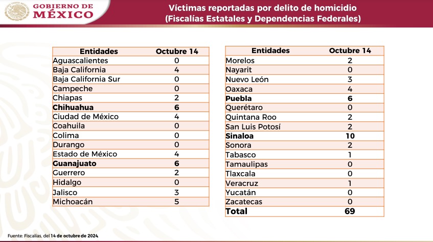 Colima, México, Avanzada (17/10/2024).- La Secretaría de Seguridad y Protección Ciudadana informó que ayer se registraron un total de 64 homicidios dolosos en todo el país....