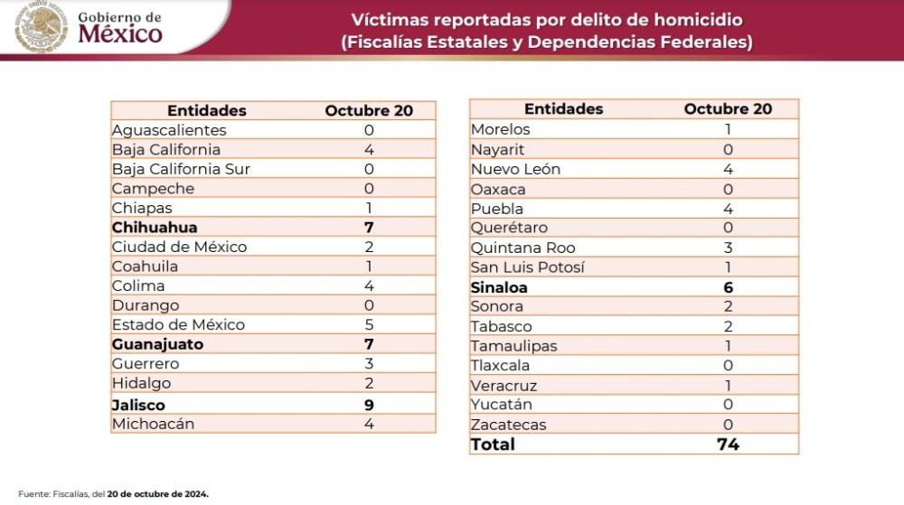 Colima, México, Avanzada (16/10/2024).- La Secretaría de Seguridad y Protección Ciudadana informó que ayer se registraron un total de 80 homicidios dolosos en todo el país....