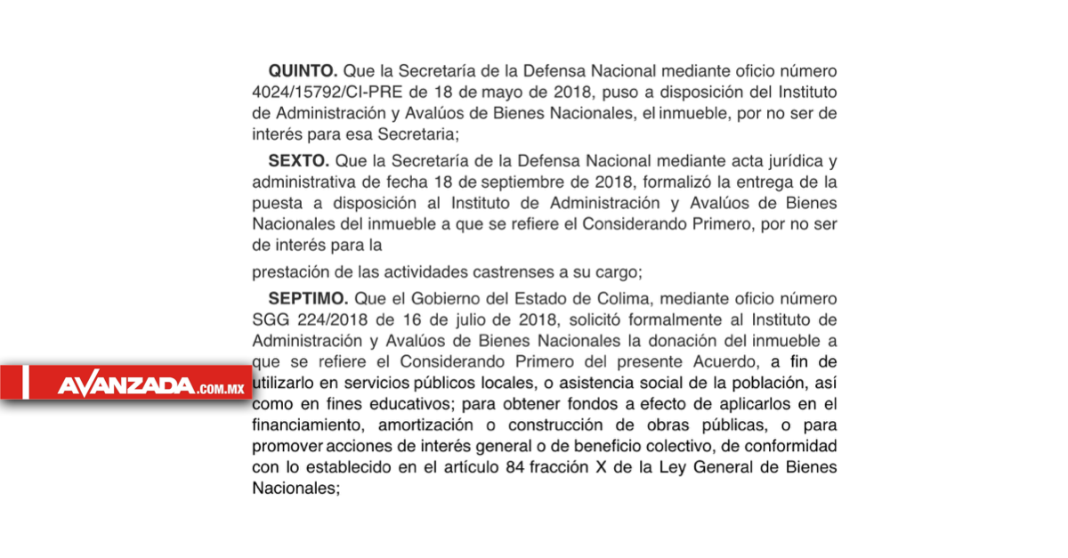 Colima, México, Avanzada (16/05/2019).- El proceso de adquisición de las instalaciones de la antigua zona militar por parte del gobierno estatal violó las leyes de Deuda...