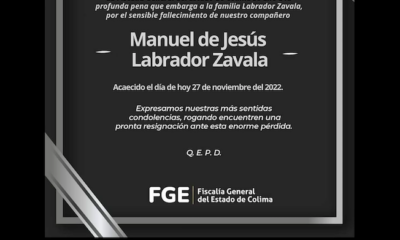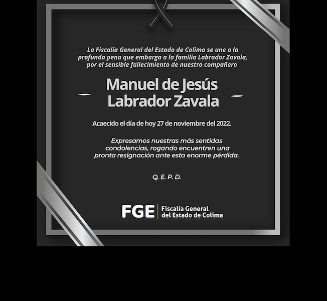 Colima, México, Avanzada (28/11/2022).- La Fiscalía General del Estado de Colima expresó sus más sentidas condolencias a los familiares del policía investigador, Manuel de Jesús Labrador...